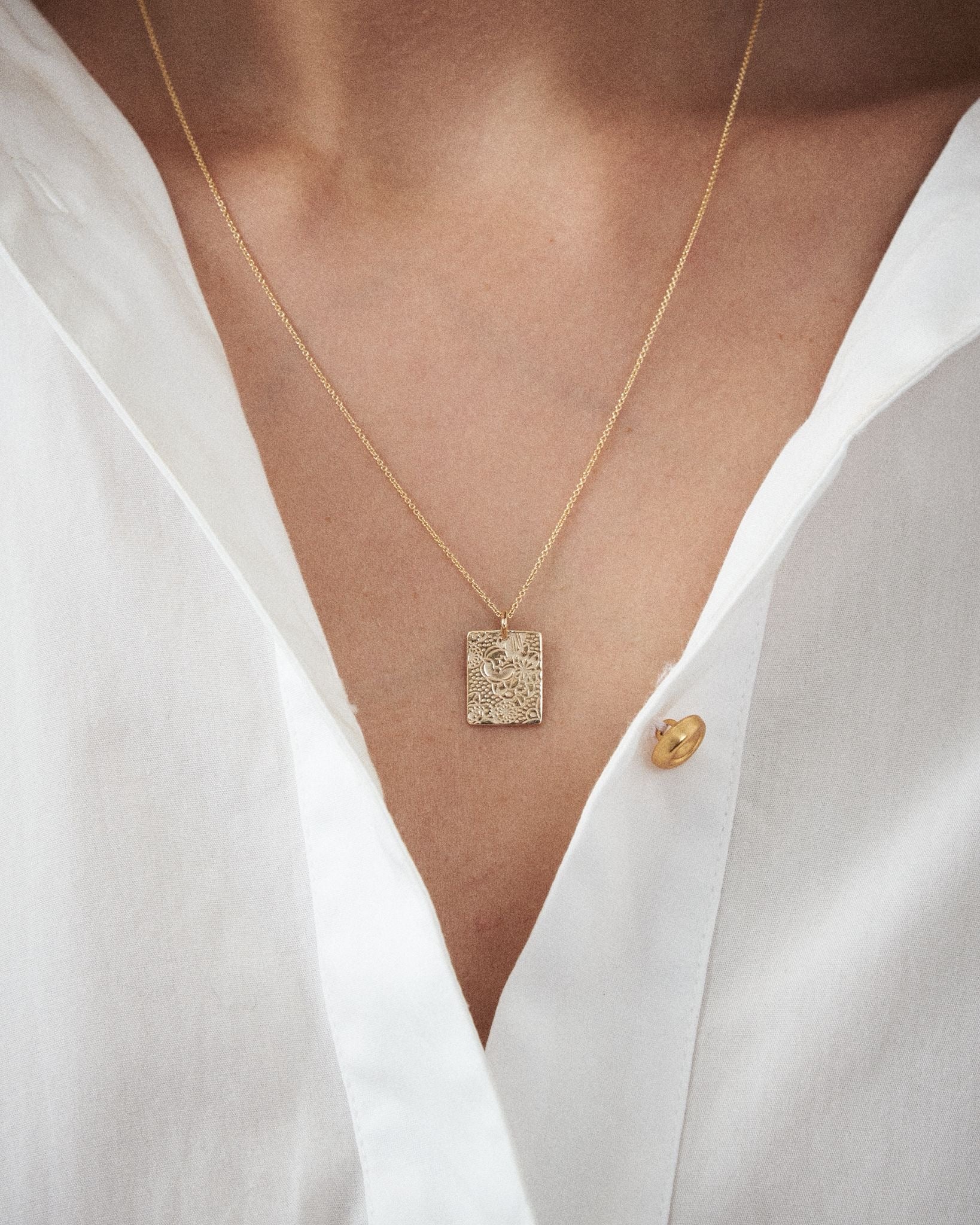 Designed and made in Australia. Cast in solid certified Australian recycled 9ct yellow Gold. Pared with a 50cm 9ct yellow gold Cable chain, made in Italy with 100% Australian gold.